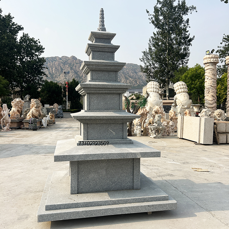 材质:花岗岩/青石/汉白玉(可选,标注抗风化、耐腐蚀特性)。 工艺:纯手工雕刻/机械粗雕+手工精修,浮雕、透雕等技术。 款式: 经幢塔(刻有佛教经文、咒语) 多层密檐塔(仿唐、宋古塔风格) 喇嘛塔(藏式白塔造型)